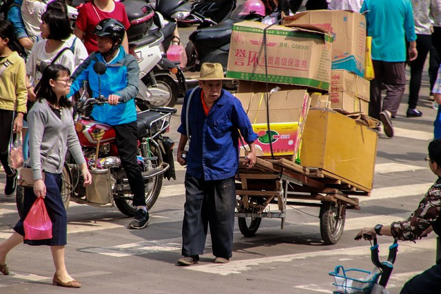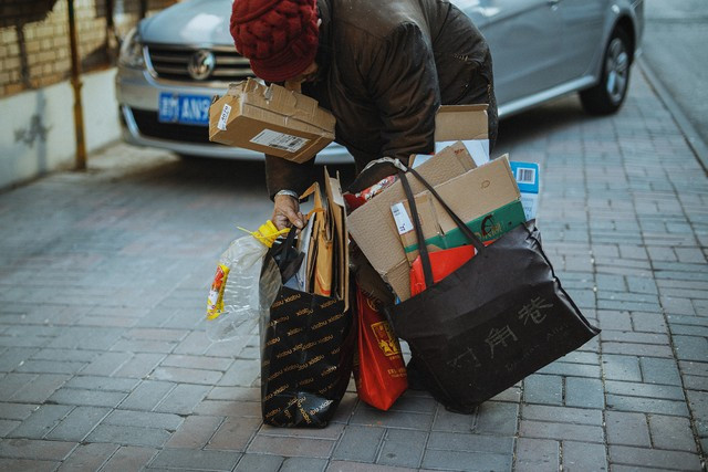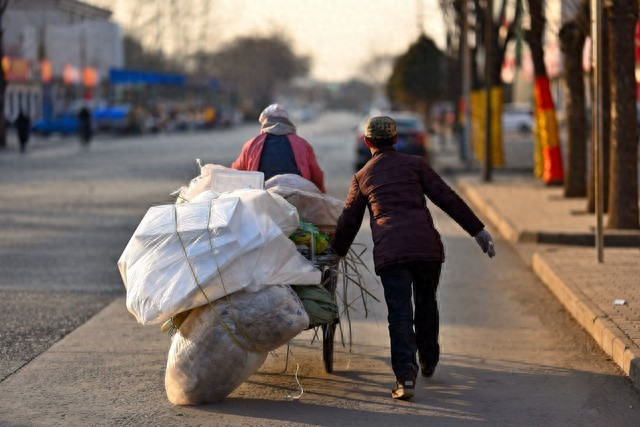 大妈为抢夺纸箱对残疾老人下狠手,将对方推倒后欲骑车逃跑